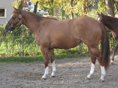 | Aus unserer Zucht kommen Champions. Hier kann Ihr nächster Champion stehen !!!!! Cowgirls Gonna Rein („Jacky“) ( Pedigree ), geb. 17.05.2010, bildhübsche red dun farbene Stute mit sehr gutem Fundament und sehr gutem Exterieur sowie einer tollen, vielversprechenden Abstammung. Hier wurden die Blutlinien von Hollywood Jac 86 und Great Pine verpaart, was in der Reiningszene als Magic Cross bezeichnet wird. Ihr Vater ist kein geringerer als Reds Gonna Rein, NRHA Open Res.Champion mit einer Gewinnsumme von US$ + 40.000,-- und einem AQHA ROM. Die Nachkommen von Reds Gonna Rein werden von Open- genauso wie von Amateur-Reiter in den Arenen geshowed. Sie haben schon unzählige Titel mit einer Gesamtgewinnsumme von US$ +21.000,-- erritten: - NRHA Germany Breeders SBH Open Futurity Res.Champion (Score 222,5) - Belgium NRHA SBH Open Futurity Champion (Score 221,5) - Austria NRHA SBH Int.Open Futurity Champion - Austria NRHA SBH Open Futurity Finalist (6.Platz) - NRHA European Non Pro Futurity Finalist (Level 4) - NRHA European Lim. Non Pro Futurity Finalist (Level 2) - NRHA European Futurity Finalist (Level 1) - NRHA USA Lawson Bronze Trophy Co. Res. Champion - NRHA USA Rookie Champion - AQHA European Experience Novice Amateur Reining Res. Champion - DQHA Landesmeister Open Junior Reining - DQHA Landesmeister Amateur Western Pleasure - DQHA Regionalfuturity Reining Res.Champion - DQHA Ovator Fohlenschau Hengst Champion - EWU German Open Jungpferde Reining Finalist (4.Platz) - EWU German Open Qualifier in Jungpferde Reining, Basis und Trail - EWU Landesmeister Junior Reining - EWU Landesmeister Junior Western Pleasure - EWU Junior Reining Champion - EWU Jungpferde Reining Champion - EWU Jungpferde Basis Champion - EWU Jungpferde Trail Champion Die Nachkommen von Reds Gonna Rein reiten auf einer Höhe mit Nachkommen von Wimpys Little Step, Gunner, Custom Crome, Magnum Chic Dream, Nu Chex to Cash, Rowdy Yankee etc. Ihre Mutter ist Miss Cactus Cowboy (von Hollywood Jac 86 aus einer direkten Great Pine Mutter), NRHA Money-Earner. Jacky ist NRHA European Futurity /Derby, NRHA Germany Futurity/Derby und DQHA Futurity und DQHA Regionalfuturity startberechtigt. Sie kann auch in den Futurities der NRHA Italia, Austria, Belgium, France, Poland etc. gestartet werden. Preis: Verkauft Matthias Borrack Tel.: 0177 / 534 84 85 E-Mail: info@borrack-qh.de |